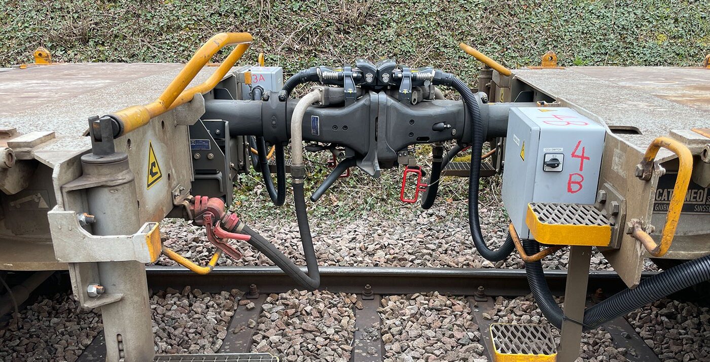 Es rumpelt und knallt. Lokführer Alexander Gyger hat den Triebwagen des Pilotzugs mithilfe einer Fernsteuerung in Bewegung gesetzt und langsam auf zwei losgekoppelte Güterwagen auffahren lassen. Ein kurzes Zischen, Gerd Dietrich wirft einen Blick auf die Kupplung. Perfekt. Das pneumatische Bremssystem hat sich automatisch verbunden, auch die elektronische Datenübertragung funktioniert. Bei jedem der insgesamt sechs Wagen wird das Manöver wiederholt. Dann wird es Zeit aufzubrechen, denn der Zug muss noch die Testfahrten auf längeren Kurven absolvieren. Der Fahrplan in der Schweiz ist dicht, die Gleise sind nur für ein kurzes Zeitfenster verfügbar.
